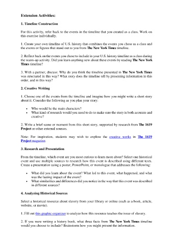 1. Create your own timeline of U.S. history that combines the events you chose as a class and