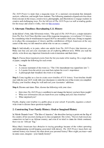 creative and challenging ways. For the full text of The 1619 Project as well as reading guides