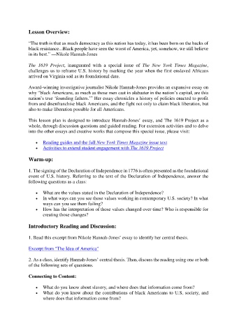1. Read this excerpt from Nikole Hannah-Jones’ essay to identify her central thesis.