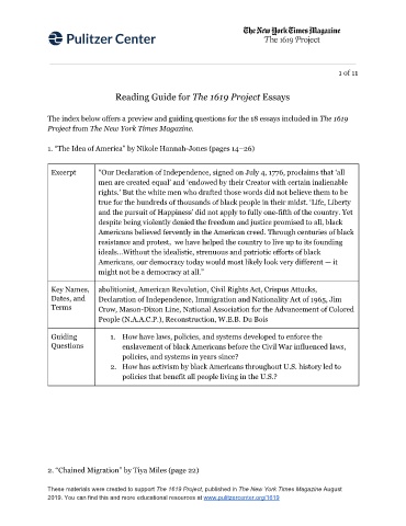 2019. You can find this and more educational resources at www.pulitzercenter.org/1619