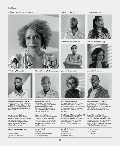 Nikole Hannah-Jones, Page 14 Trymaine Lee, Page 82 Lynn Nottage, Page 84 Dannielle Bowman, Page 98