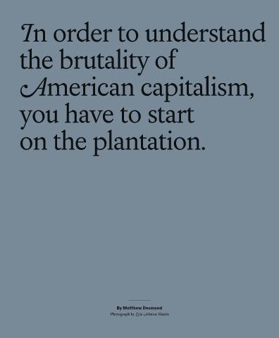 In order to understand the brutality of American capitalism, you have to start on the plantation. By Matthew Desmond Photograph by Lyle Ashton Harris
